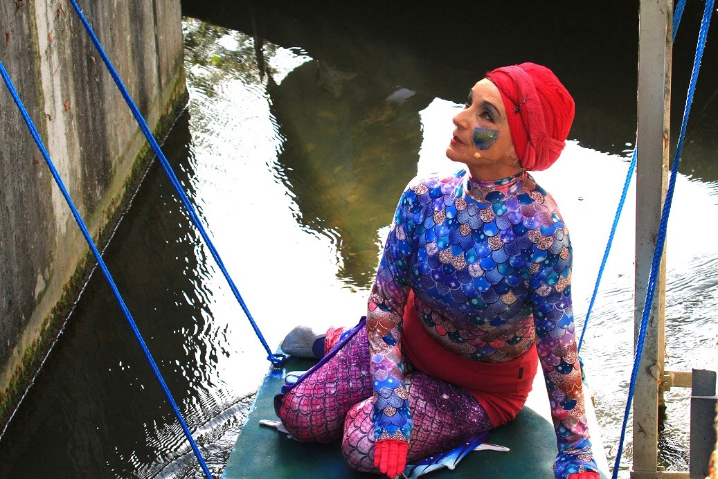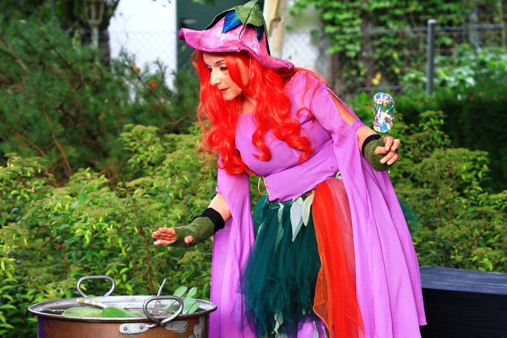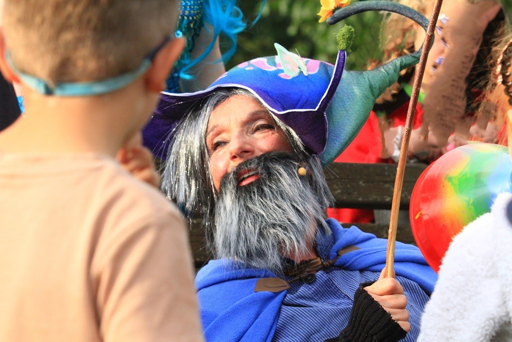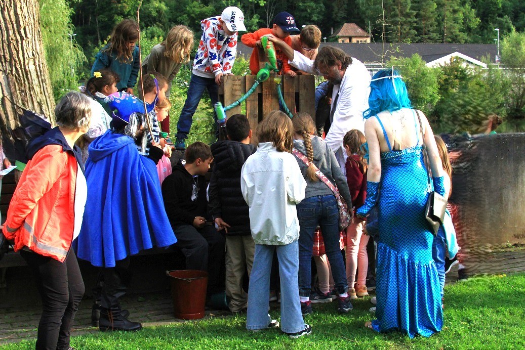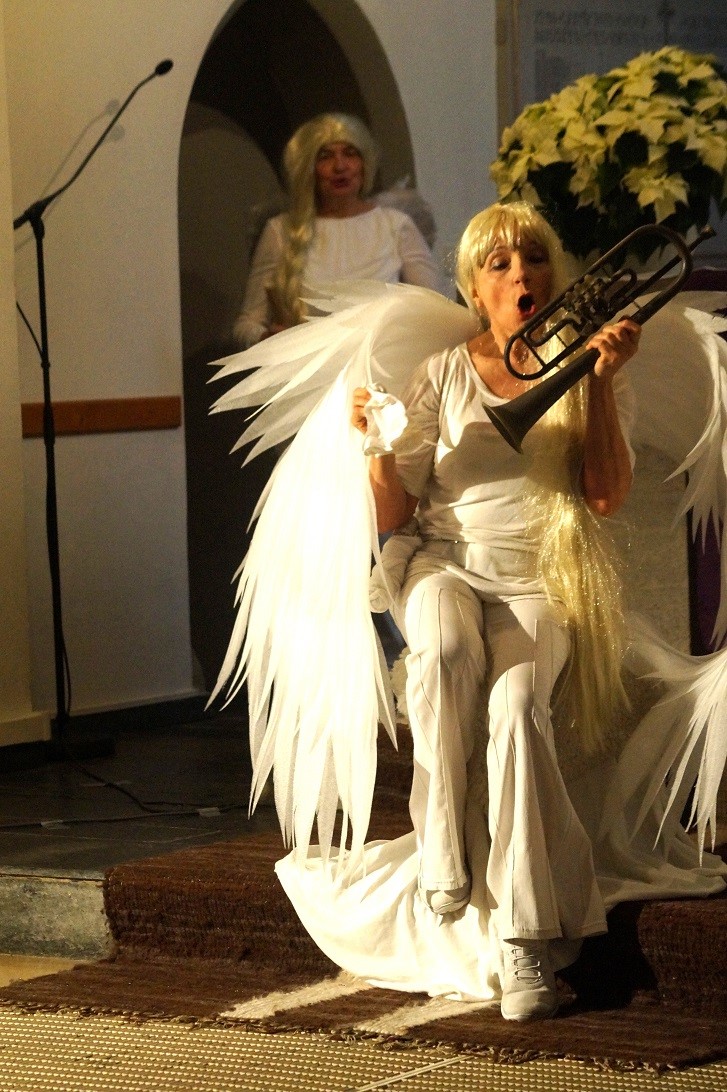 Pina Bucci und Dorothee Jakubowski bezauberten mit ihrer Performance „Träume vom Fliegen“ wie schon beim Theaterfestival. Die beiden Schauspielerinnen hatten sich in duftiger Pastellgaze zu Paradiesvögeln verwandelt, die durch das Gelände schwebten, von Hans-Jürgen Sesterheim am Saxophon einfühlsam begleitet.